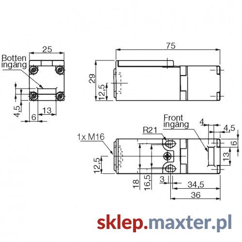 Podłączenie kabla 1xM16 lub złącze M12 4-pin
