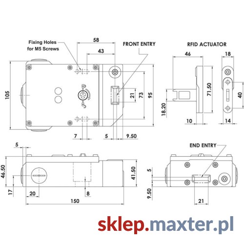 Wyłącznik KLT-SS-RFID firmy IDEM ma standardowy rozstaw otworów mocujących 73 mm.